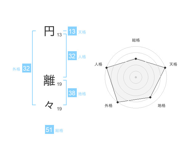 円 離々さんの外格は32画の5点!
