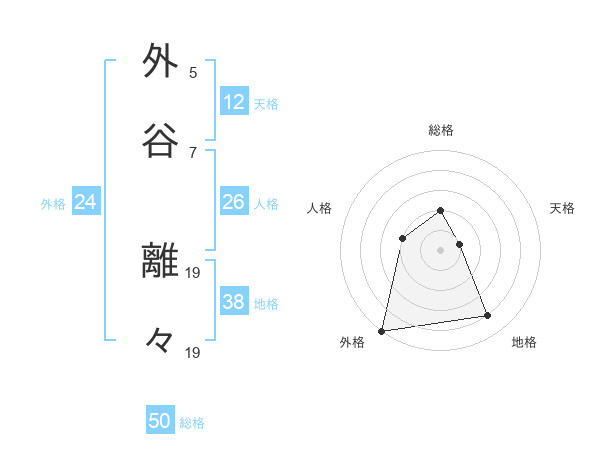 外谷 離々さんの総格は50画の2点!