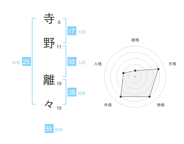 寺野 離々さんの天格は17画の4点!