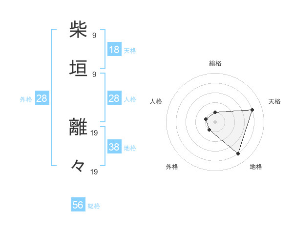 柴垣 離々さんの天格は18画の4点!