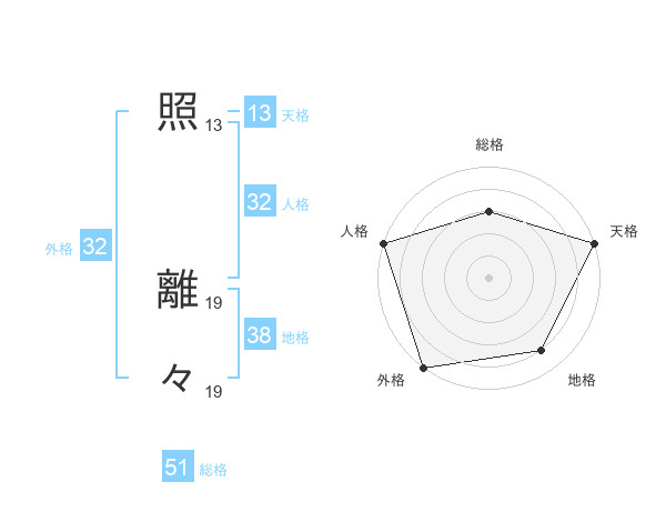 照 離々さんの天格は13画の5点!