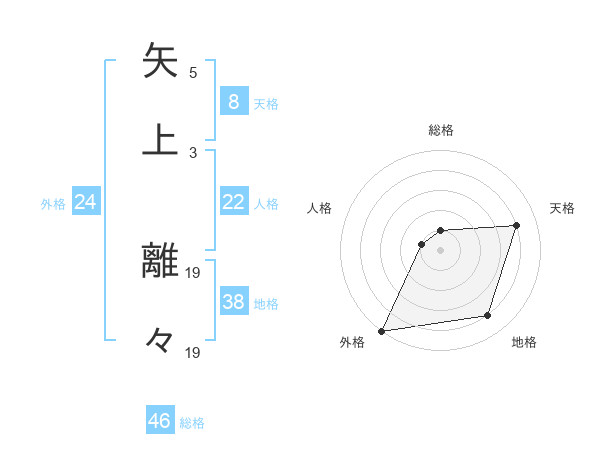 矢上 離々さんの外格は24画の5点!