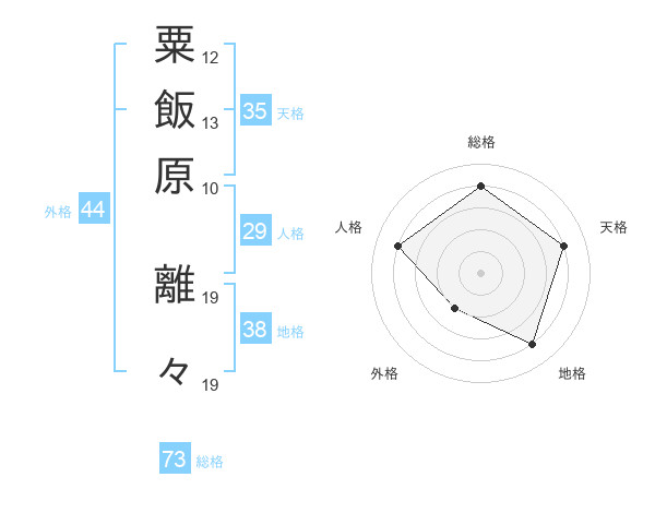 粟飯原 離々さんを姓名の画数から五運を鑑定