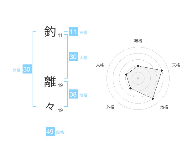 釣 離々さんの総格は49画の2点!