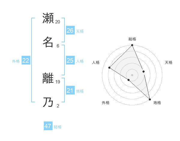 瀬名 離乃さんを姓名の画数から五運を鑑定