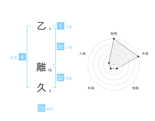 乙 離久さんの総格は23画の5点!