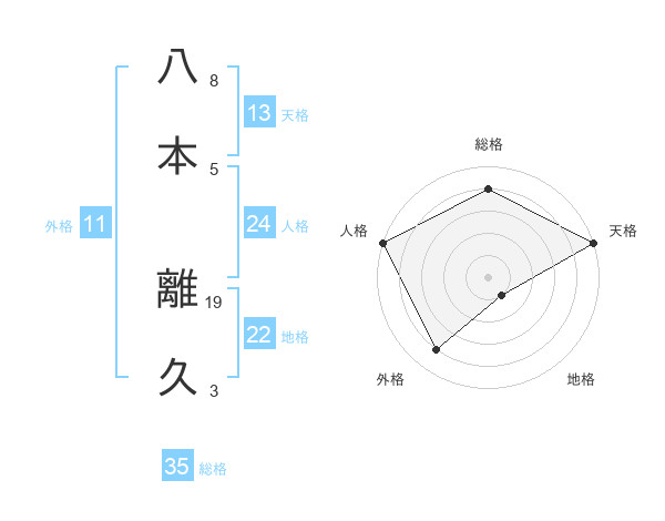 八本 離久さんの総格は35画の4点!