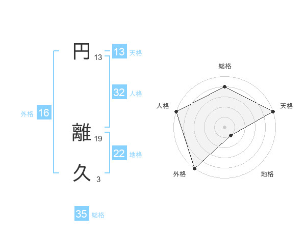 円 離久さんの総格は35画の4点!