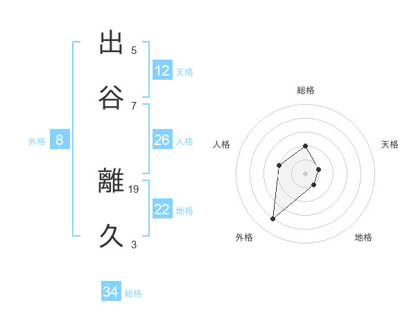 出谷 離久さんの総格は34画の2点!