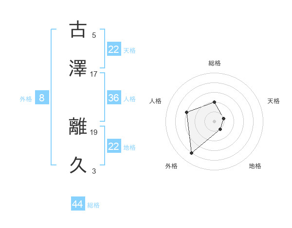 古澤 離久さんの総格は44画の2点!