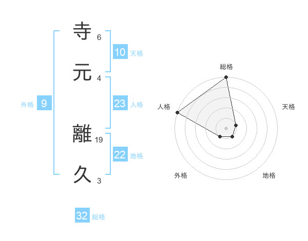 寺元 離久さんを姓名の画数から五運を鑑定