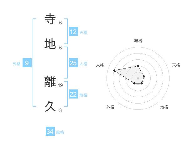 寺地 離久さんの総格は34画の2点!
