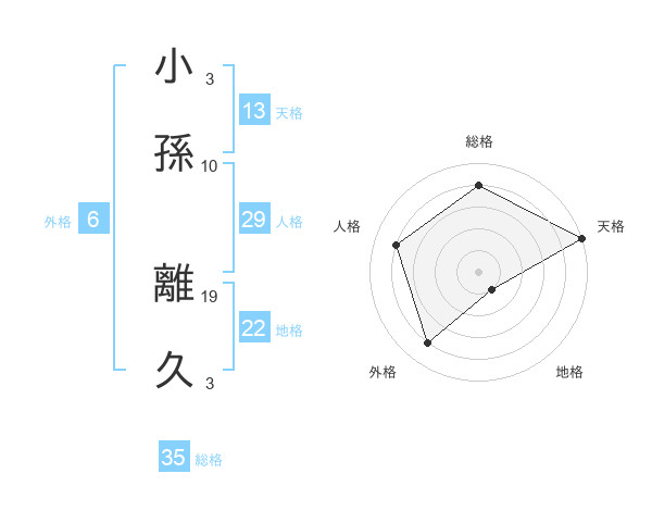 小孫 離久さんの天格は13画の5点!