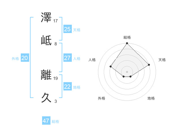 澤岻 離久さんの総格は47画の5点!