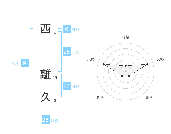 西 離久さんの総格は28画の1点!