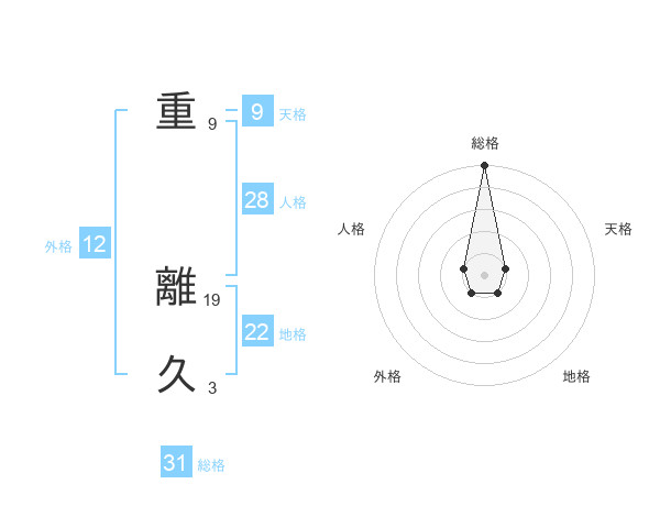 重 離久さんの総格は31画の5点!