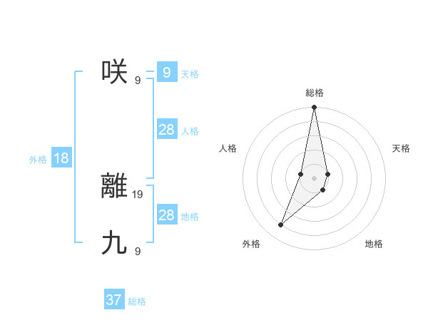 咲 離九さんの総格は37画の5点!