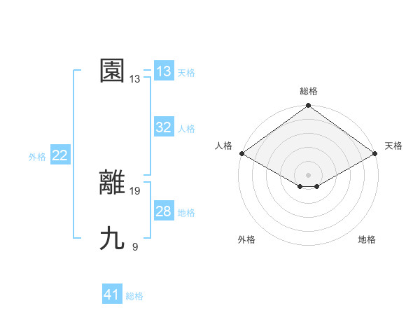 園 離九さんの総格は41画の5点!