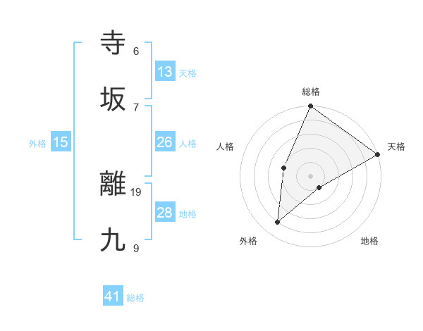 寺坂 離九さんの天格は13画の5点!