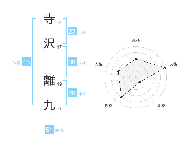 寺沢 離九さんの総格は51画の3点!