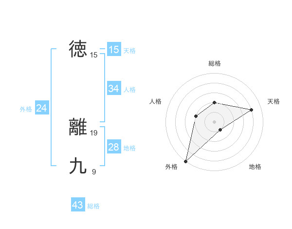 徳 離九さんの外格は24画の5点!