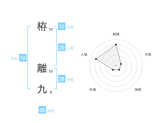 栫 離九さんの総格は38画の4点!