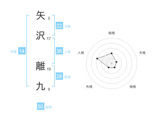 矢沢 離九さんを姓名の画数から五運を鑑定
