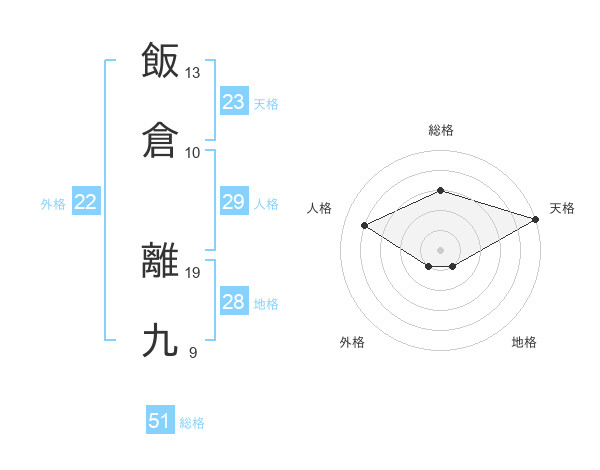 飯倉 離九さんを姓名の画数から五運を鑑定