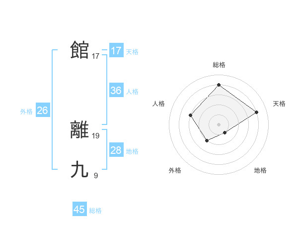 館 離九さんの総格は45画の4点!