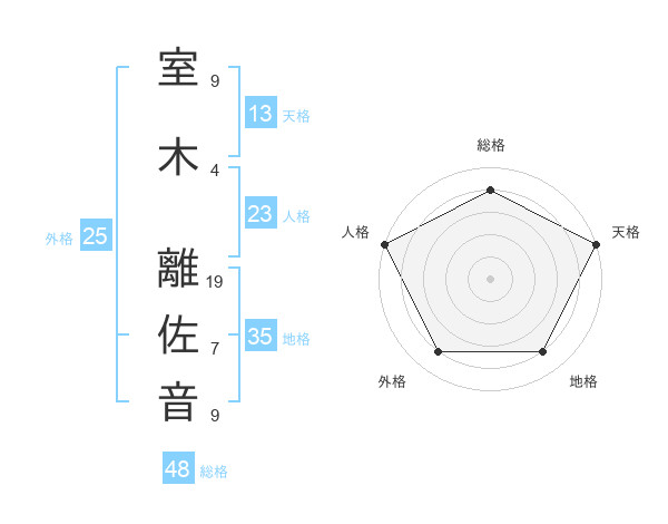 室木 離佐音さんの総格は48画の4点!