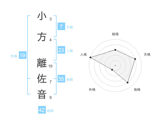 小方 離佐音さんを姓名の画数から五運を鑑定