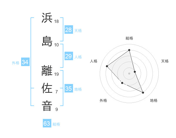 浜島 離佐音さんを姓名の画数から五運を鑑定