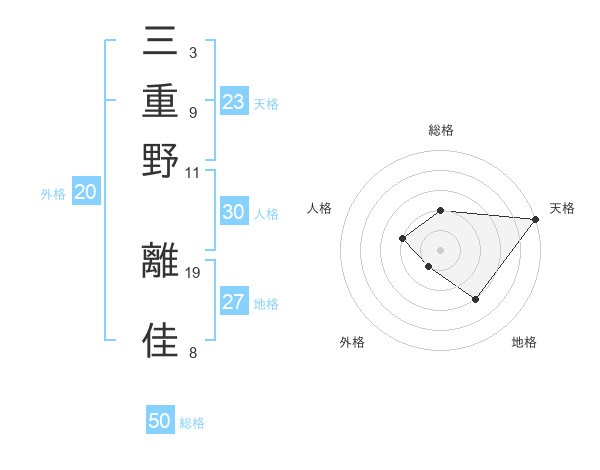 三重野 離佳さんを姓名の画数から五運を鑑定