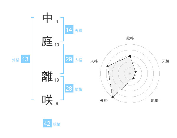 中庭 離咲さんを姓名の画数から五運を鑑定