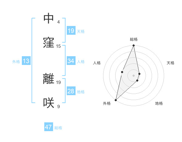 中窪 離咲さんを姓名の画数から五運を鑑定