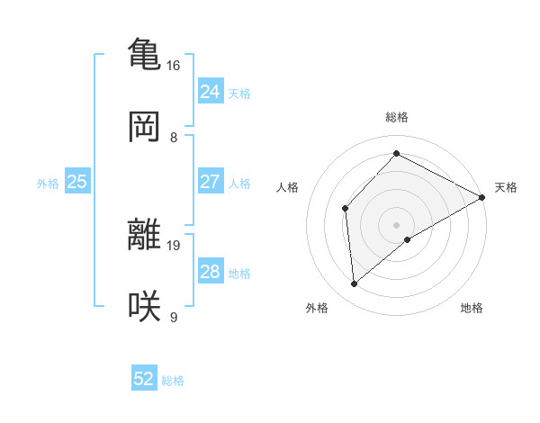 亀岡 離咲さんを姓名の画数から五運を鑑定