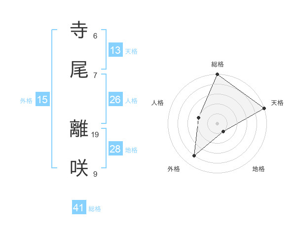 寺尾 離咲さんの外格は15画の4点!