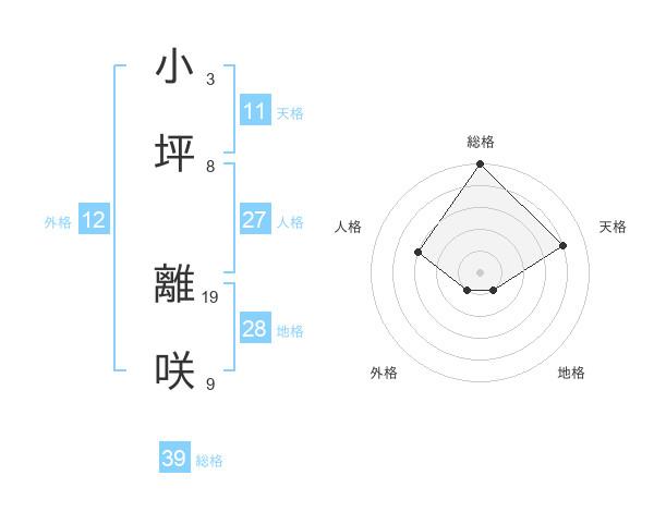 小坪 離咲さんを姓名の画数から五運を鑑定