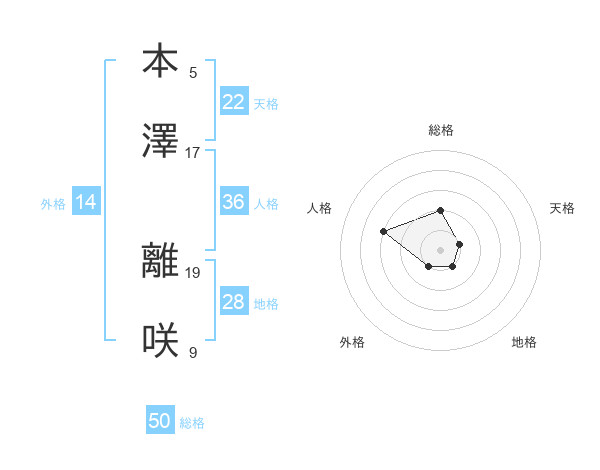 本澤 離咲さんの総格は50画の2点!