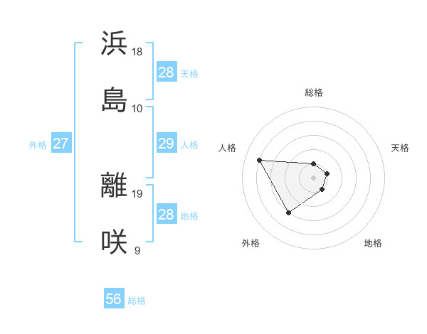 浜島 離咲さんを姓名の画数から五運を鑑定