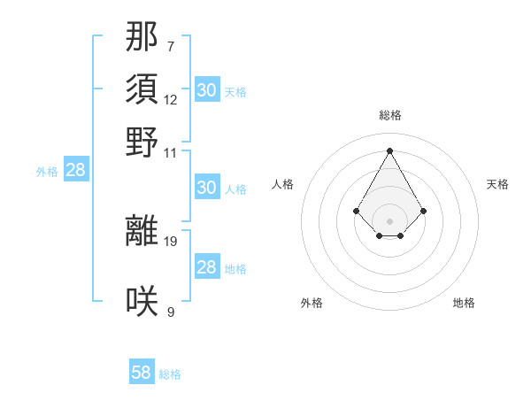 那須野 離咲さんを姓名の画数から五運を鑑定