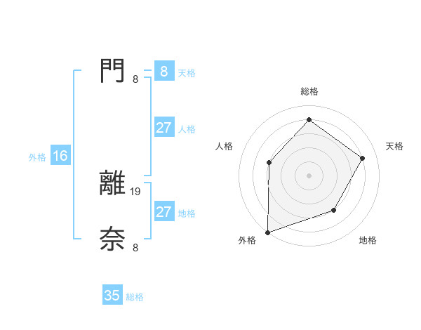 門 離奈さんを姓名の画数から五運を鑑定