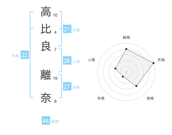 高比良 離奈さんを姓名の画数から五運を鑑定