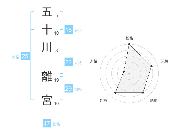 五十川 離宮さんの総格は47画の5点!
