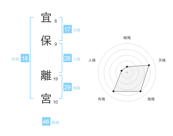 宜保 離宮さんの外格は18画の4点!