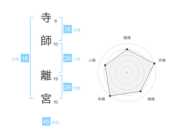 寺師 離宮さんを姓名の画数から五運を鑑定