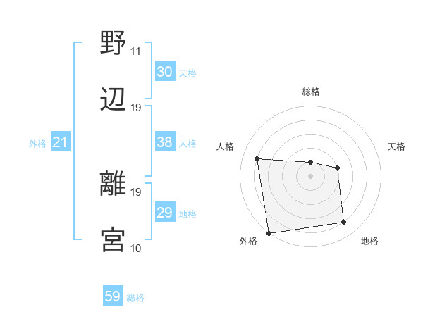 野辺 離宮さんを姓名の画数から五運を鑑定