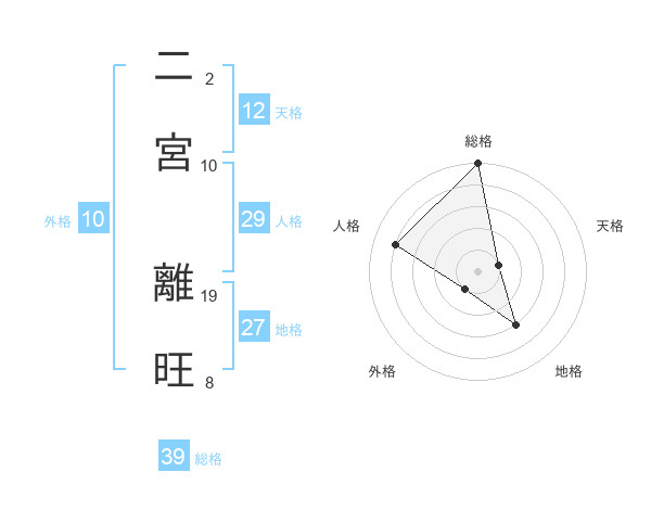 二宮 離旺さんの総格は39画の5点!