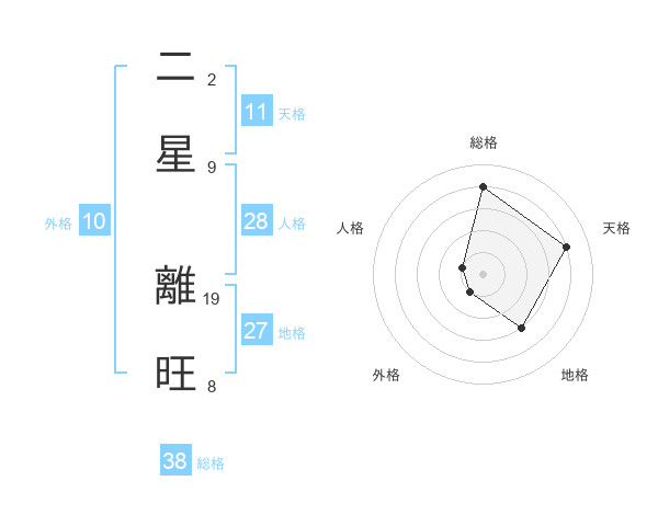 二星 離旺さんの総格は38画の4点!