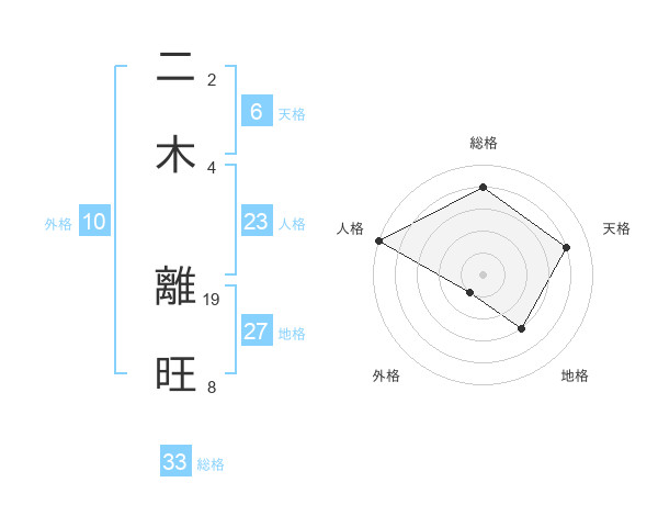 二木 離旺さんの総格は33画の4点!